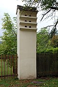 Das Pestkreuz stammt aus dem 18. Jahrhundert. Nach dem benachbarten Bauernhof wird es auch „Nebel-Pestkreuz“ genannt. Es handelt sich um einen Etagenbildstock, im unteren Teil befinden sich drei Rundbogennischen. Der Bildstock wurde 1971 zum Dank für den geglückten Hausbau renoviert, eine weitere Renovierung erfolgte 2004.[48] Anmerkung: Es liegt auf einem Grundstück der EZ 3 KG 61246 Wald rechts (Richtung Westen) an der Landesstraße LH 642 (Sauerbrunnstraße) außerhalb des bebauten Gebietes. Es kann mit einem anderen, nicht unter Denkmalschutz stehenden Bildstock ca. 300 m östlich an der Straßenkreuzung der Sauerbrunnstraße mit dem Angenofenweg und dem Grünbaumweg verwechselt werden. |