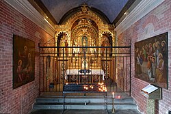 | Innenansicht der Loretokapelle nächst der Pfarr- und Wallfahrtskirche Zum göttlichen Christuskind in Christkindl, ein Ortsteil der oberösterreichischen Stadt Steyr . Die Kapelle, eine Nachbildung des Heiligen Hauses von Nazareth , wurde 1876 nach einem Entwurf und unter Leitung des Steyrer Kunsttischlers Johann Jaunisch errichtet und am 29. Juni 1876 vom Linzer Bischof Franz Josef Rudigier geweiht. | Eigenes Werk | C.Stadler/Bwag | Datei:Christkindl (Steyr) - Loretokapelle, Innenansicht.JPG | |