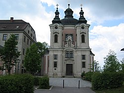 Bedeutender auf der Hochterrasse des Steyrufers situierter, weithin sichtbarer, barocker Kirchenbau. Baubeginn 1702 nach Plänen von Carlo Antonio Carlone. Ab 1708 durch Jakob Prandtauer vollendet. 1877 Erhöhung der beiden Osttürme. Nach Westen orientierter Rundbau mit vier Konchen, über denen der hohe Tambour, der durch große Doppelfenster belichtet wird und die etwas gedrückte Kuppel emporsteigen. Vorbild des Baues, die Kirche Sta. Maria Rotonda in Rom. Im Südwesten zweigeschoßiger zweiachsiger Sakristeianbau, hier im Obergeschoß einachsiger Verbindungsgang zum Pfarrhof. Dreiachsige Ostfassade mit zwei Türmen und Attika. Mittig über Stufen erreichbares rechteckiges Portal. Über dem darüber situiertem Doppelfenster in barock geschwungenem Aufbau in rundbogiger Nische Christuskindstatue. Dreigeschoßige Türme mit barock wirkenden, erst 1877 geschaffenen Abschluss mit geschwungener Haube und Laterne. Im Inneren Kuppelfresko Himmelfahrt Mariä, am Rand in fünf Gruppen die Verwandtschaft Christi, von Karl von Reslfeld. Der um 1710 geschaffene Hochaltar ist ein Gebilde von Wolken und Engeln, oben abschließend die Figur Gottvater. Zwei Seitenaltäre, das Abschlussgitter aus dem 2. Viertel des 18. Jahrhunderts. | BDA-Hist.: Q1708871 Status: § 2a Stand der BDA-Liste: 2024-06-15 Name: Wallfahrtskirche Zum göttlichen Christuskind GstNr.: .47 Wallfahrtskirche Christkindl |
