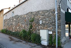 Früher umfassende Stadtmauer aus dem 14. und 15. Jahrhundert, heute mehrmals durchbrochen und in Häusern verbaut. Frei stehend an der Rückseite des Hauses sichtbar. | BDA-Hist.: Q37983405 Status: Bescheid Stand der BDA-Liste: 2024-06-15 Name: Stadtmauer GstNr.: .160/2, .159/2, .159/1 Stadtmauer bei Weissenwolffstraße (Steyregg) |