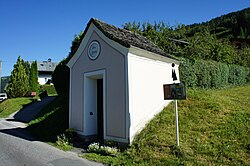 Den schlichten Bau mit Giebelfront hat, nach mündlicher Überlieferung, die Niederhofbäuerin aus Dankbarkeit für Hilfe in großer Not Mitte des 19. Jahrhunderts errichten lassen. Die volkstümlichen Bilder im Inneren der Kapelle (Ende 19./Anfang 20. Jahrhundert) stellen die Madonna mit Kind, den hl. Georg, den hl. Florian u. a. dar. | BDA-Hist.: Q38056799 Status: § 2a Stand der BDA-Liste: 2024-06-15 Name: Höfer Kapelle GstNr.: 1052/2 |