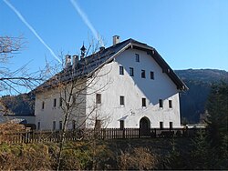 Der Pfarrhof ist ein zweigeschoßiger Barockbau mit Krüppelwalmdach. | BDA-Hist.: Q38054470 Status: Bescheid Stand der BDA-Liste: 2024-06-15 Name: Pfarrhof GstNr.: .148 Pfarrhof Eschenau (municipality Taxenbach) |