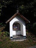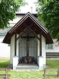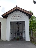 Die offene gemauerte Kapelle mit offenem Dachstuhl und Schmiedeeisengitter beherbergt in der Rundbogennische ein um 1800 geschaffenes Kruzifix.[17] | BDA-Hist.: Q37807245 Status: § 2a Stand der BDA-Liste: 2024-06-15 Name: Kreuzkapelle GstNr.: 4743/2 |