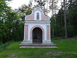 kleiner barocker Bau mit einem westlich vorgestellten Turm aus der Mitte des 19. Jahrhunderts | BDA-Hist.: Q38173195 Status: § 2a Stand der BDA-Liste: 2024-06-15 Name: Ortskapelle hl. Johannes Nepomuk GstNr.: .126 |