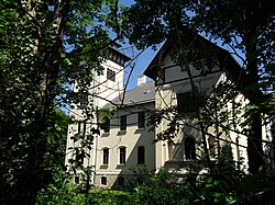 1878–1880 erbauter gründerzeitlicher Bau mit Elementen des Heimatstils, vermutlich nach Plänen von Theophil von Hansen | BDA-Hist.: Q37960778 Status: Bescheid Stand der BDA-Liste: 2024-06-15 Name: Scherz-Villa (Welzl-Villa) GstNr.: .124 |