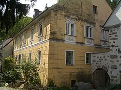 Die ehemalige Hammerschmiede wurde 1594 urkundlich erwähnt. Das zweigeschoßige Herrenhaus trägt eine historistische Fassade. Das Portal weist die Jahreszahl 1886 auf. Durch einen Schwibbogen ist das Herrenhaus mit der ehemaligen Schmiede verbunden. | BDA-Hist.: Q37848087 Status: Bescheid Stand der BDA-Liste: 2024-06-15 Name: Reinholds- oder Russenhammer, Herrenhaus und Schmiede GstNr.: .148/1, .148/2 |