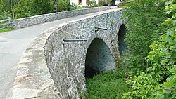 Die barocke einbogige Steingewölbebrücke über den Steinbrückenbach ist mit 1822 bezeichnet.[3] Sie wurde 2016 saniert.[4] Anmerkung: Die Brücke verbindet die Gemeinden Trebesing und Seeboden am Millstätter See über den Steinbrückenbach. |