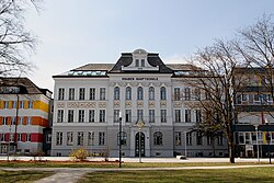 1908 als „Kaiser-Franz-Josef-Jubiläums-Bürgerschule“ eröffnet. 1915 wurde die Schule für militärische Zwecke geräumt und der Schulunterricht erfolgte in den weiteren Kriegsjahren in Gasthäusern. | BDA-Hist.: Q37764752 Status: § 2a Stand der BDA-Liste: 2024-06-15 Name: Knabenhauptschule GstNr.: .292 |