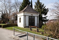 Die frühbarocke Kapelle hat ein großes Eisengitter aus dem Jahr 1564. Nachdem das Marien-Medaillon 1968 gestohlen wurde, gestaltete man sie zu einer Dreifaltigkeitskapelle um. 1994 wurde die Kapelle restauriert und durch eine Kopie des Marien-Medaillons wieder in einen Mariahilf-Kapelle umgewandelt.[3] | BDA-Hist.: Q37764315 Status: § 2a Stand der BDA-Liste: 2024-06-15 Name: Mariahilf-Kapelle GstNr.: 907/1 |