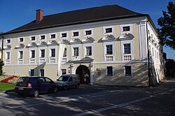 Die hufeisenförmige Anlage wurde – basierend auf einem Vorgängerbau – im Anschluss an den Bau der Dörflkirche von Carlo Antonio Carlone in den Jahren 1691 bis 1694 errichtet.[4][3] | BDA-Hist.: Q37764287 Status: § 2a Stand der BDA-Liste: 2024-06-15 Name: Pfarrhof GstNr.: .1 |