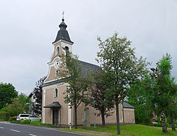 Eine 1723 erbaute, einschiffige Kirche.[2] | BDA-Hist.: Q37789960 Status: § 2a Stand der BDA-Liste: 2024-06-15 Name: Evang. Filialkirche, Kalvarienbergkirche GstNr.: .68/1 |