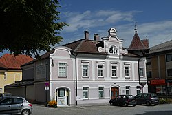Haus mit Frühbiedermeier-Stuckfassade aus dem Anfang des 19. Jahrhunderts.[2] | BDA-Hist.: Q38016144 Status: Bescheid Stand der BDA-Liste: 2024-06-15 Name: Ehem. Schmiede GstNr.: .14 |