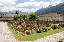 | Der denkmalgeschützte Friedhof in Virgen im Bezirk Lienz. Dieses Bild zeigt das in Österreich unter der Nummer 2759 denkmalgeschützte Objekt. ( Commons , de , Wikidata ) | Eigenes Werk | Michael Kranewitter | Datei:Friedhof Virgen I.jpg | |