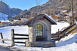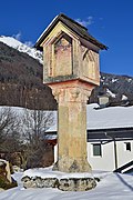 Der gemauerte Bildstock befindet sich am Pilgerweg zwischen Virgen und Obermauern. Er besitzt ein schindelgedecktes Satteldach, das eine hohe, flachbogig geschlossene Altarnische beschützt. Das hölzerne Altärchen stammt aus dem 18. Jahrhundert und zeigt eine Pietà unter dem Kreuz vor gemaltem Landschaftshintergrund. | BDA-Hist.: Q1663886 Status: § 2a Stand der BDA-Liste: 2024-06-15 Name: Wegkapelle Ketterle GstNr.: 2223/1 Wegkapelle Ketterle |