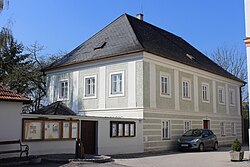 Zweigeschoßiger Bau unter Walmdach, 1754 erbaut. | BDA-Hist.: Q37902390 Status: § 2a Stand der BDA-Liste: 2024-06-15 Name: Pfarrhof GstNr.: 1166 |