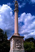 1682 errichtete[4] Mariensäule mit Figur der Immaculata von P. Resch aus 1904.[3] 1862 verfügte der Färbermeister Alois Fuß eine Renovierung und Ergänzung mit dem Bild der Dreifaltigkeit. 1974 wurde das Denkmal wegen einer Umgestaltung des Hauptplatzes auf seinen heutigen Standort gebracht und wieder renoviert. Vorher stand die Säule am unteren Ende des Hauptplatzes. | BDA-Hist.: Q38185589 Status: § 2a Stand der BDA-Liste: 2024-06-15 Name: Mariensäule GstNr.: 1/1 Mariensäule Weiz |