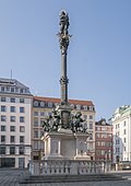Die Mariensäule in der Mitte des Platzes wurde 1645 von Kaiser Ferdinand III. zum Dank für die Rettung Wiens vor der Schwedengefahr gestiftet. Carlo Martino Carlone und Carlo Canevale schufen 1667 die Säule auf quadratischem Sockel, an dessen Ecken vier Putti, die gegen Drachen, Löwen, Schlange und Basilisken kämpfen zu sehen sind. Auf der Spitze der Säule befindet sich die Bronzefigur der Maria Immaculata. | BDA-Hist.: Q1897966 Status: Bescheid Stand der BDA-Liste: 2024-06-15 Name: Mariensäule am Hof GstNr.: 1598/1 Mariensäule am Hof |
