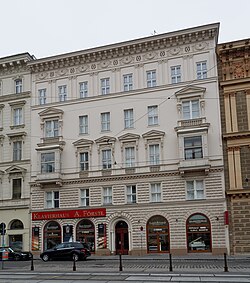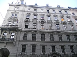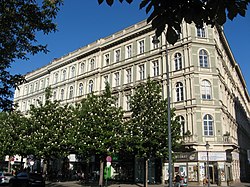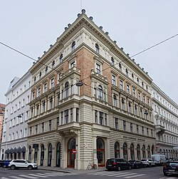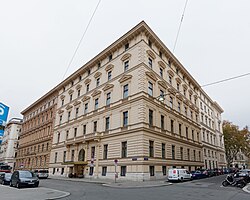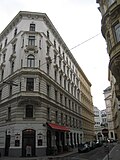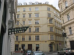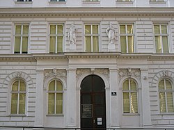 | Handelsakademie I (1860-62) von Ferdinand Fellner d. Ä., Akademiestraße 12, Wien-Innere Stadt | Eigenes Werk | Buchhändler | Datei:Akademiestraße 10.jpg | |