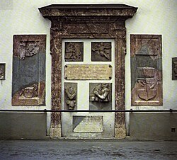 Sog. Kielmansegg-Mauer mit Bauplastik, Epitaphen und Grabmälern
