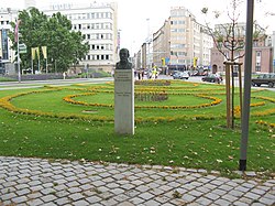 Die Bronzebüste auf einem Postament zum Gedenken an den Schöpfer des Esperanto schuf Josef Müller-Weidler im Jahre 1958. | BDA-Hist.: Q38007732 Status: § 2a Stand der BDA-Liste: 2024-06-15 Name: Ludwig Zamenhof-Denkmal GstNr.: 1899/12 Zamenhof monument, Vienna |
