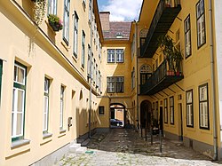 | Bürgerhaus in der Münzwardeingasse 2 im 6. Bezirk in Wien, Österreich | Eigenes Werk | Robert Heilinger | Datei:Bürgerhaus 9360 in A-1060 Wien.jpg | |