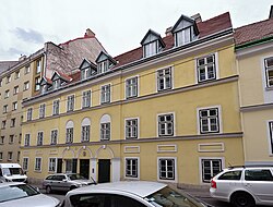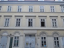 Das Haus entstand um 1790 und wurde im ersten Viertel des 19. Jahrhunderts verändert. Der Name kommt von einem Porträtrelief Kaiser Josephs II. über der Türe. | BDA-Hist.: Q38176603 Status: Bescheid Stand der BDA-Liste: 2024-06-15 Name: Wohnhaus, Zum römischen Kaiser GstNr.: 313 Miethaus Stiegengasse 9, Wien-Mariahilf |