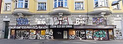Fassade und Einrichtung dieses Espresso-Lokals stammen aus dem Jahr 1955 von Ernst Otto Hofmann.[6] | BDA-Hist.: Q37831718 Status: Bescheid Stand der BDA-Liste: 2024-06-15 Name: Geschäftslokal Naber Kaffee GstNr.: 985 |