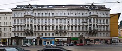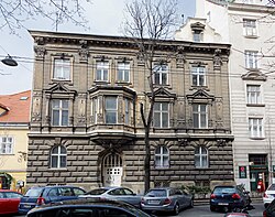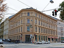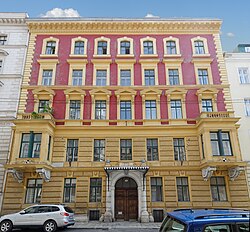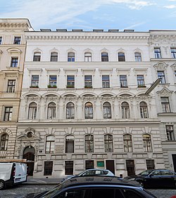 Das späthistoristische Zinshaus in Neorenaissance-Formen mit palaisartiger Fassade wurde 1895 von Fellner und Helmer erbaut. | BDA-Hist.: Q112875034 Status: Bescheid Stand der BDA-Liste: 2024-06-15 Name: Wohnhaus GstNr.: 987 |