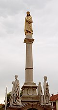 Die Säule mit der Statue, welche Jesus von Nazaret in der Ecce-Homo-Szene darstellt, steht auf dem Kirchplatz von Wies, Statue und Säule werden in das Ende des 18. Jahrhunderts datiert. 1959 wurde das Standbild zu einem Kriegerdenkmal umgestaltet, die Sockelstatuen stammen aus dieser Zeit.[2] Anmerkung: Das Denkmal steht auf dem Grundstück Nr. 535/10 KG 61150 Wies, seine Grundbuchseinlage ist die EZ 466 mit der Bezeichnung „Pfarrsgült Altenmarkt“ KG 61103 Altenmarkt. Eigentümer ist die „römisch-katholische Pfarrpfründe zum Heiland in Wies, Altenmarkt“ (bis 1990 gehörte das Grundstück zur EZ 1435 des Grundbuches 02300 Landtafel Steiermark, diese Angabe findet sich noch in älteren Unterlagen). |