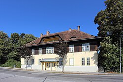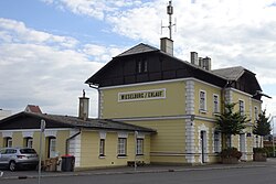 Der Bahnhof der Bahnstrecke Pöchlarn–Kienberg-Gaming wurde 1877 errichtet.[2] | BDA-Hist.: Q37862675 Status: Bescheid Stand der BDA-Liste: 2024-06-15 Name: Aufnahmsgebäude Wieselburg GstNr.: .115 Aufnahmsgebäude Bahnhof Wieselburg/Erlauf |