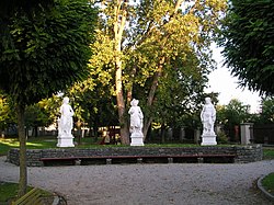 Am Hauptplatz stehen Abgüsse von den allegorischen Darstellungen der Flüsse Enns, Mur, Raab, Salzach und Traun des Albrechtsbrunnens in Wien. Die Originalstatuen, geschaffen von Johann Meixner (1869), wurden nach dem Zweiten Weltkrieg im Schlosspark aufgestellt und um 1985/89 an den ursprünglichen Ort rückgeführt.[2] | BDA-Hist.: Q37948001 Status: § 2a Stand der BDA-Liste: 2024-06-15 Name: Steinfiguren Enns, Salzach, Raab, Traun und Mur GstNr.: 49 Steinfiguren Enns, Salzach, Raab, Traun und Mur |