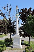 Eine kolorierte Immaculata-Steinfigur auf einer Säule, deren Sockel mit der Jahreszahl 1863 bezeichnet ist. | BDA-Hist.: Q37908348 Status: § 2a Stand der BDA-Liste: 2024-06-15 Name: Mariensäule Maria Immaculata GstNr.: 74/1 Maria column in Wildendürnbach |