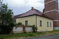 Der Pfarrhof von Wildendürnbach ist ein Gassenfronthaus mit schlichtem Putzdekor aus der Zeit um 1900. | BDA-Hist.: Q37909175 Status: § 2a Stand der BDA-Liste: 2024-06-15 Name: Pfarrhof GstNr.: 32 Pfarrhof (Wildendürnbach) |