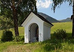 Die Kapelle zum heiligen Josef liegt in exponierter Lage beim Kollreid-Hof. Sie wurde 1720 erbaut und beherbergt neben Wandmalereien mit Darstellungen aus dem Leben des heiligen Josefs einen Altar aus dem Jahr 1758 mit der Darstellung der Heiligen Familie. | BDA-Hist.: Q37940956 Status: Bescheid Stand der BDA-Liste: 2024-06-15 Name: Kapelle hl. Josef GstNr.: .86 |