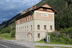 Der Bahnhof Mittewald an der Drau wurde im Gegensatz zu anderen Stationen an der Bahnlinie nicht nach den Pustertaler Regeltypen errichtet. Auf Grund der Hanglage drei- bzw. zweigeschoßig erbaut, wobei das Erdgeschoß in Steinmauerwerk, das erste Obergeschoß mit glatten Steinquadern und das zweite Obergeschoß mit Sichtmauerwerk ausgeführt wurde. | BDA-Hist.: Q37941773 Status: Bescheid Stand der BDA-Liste: 2024-06-15 Name: Aufnahmsgebäude Mittewald GstNr.: .170 |