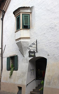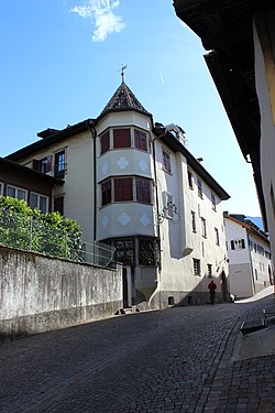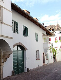 Mesnerhaus | 46° 28′ 21,3″ N, 11° 15′ 42,6″ O | Städtisches Wohnhaus, im zweiten Obergeschoss zwei Räume mit Stuckdecken. Eintrag im Monumentbrowser auf der Website des Südtiroler Landesdenkmalamts |