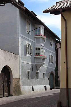| Platz 6–9 | 46° 28′ 20,5″ N, 11° 15′ 39,9″ O | Das städtische Wohnhaus ist ein dreigeschossiger Eckbau, im Kern spätgotisch. Eintrag im Monumentbrowser auf der Website des Südtiroler Landesdenkmalamts |