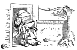 „Der Professor der Poesie und Beredsamkeit nahm eine Prise, klappte die Dose zu, räusperte sich und sprach feierlich: ‚Hochzuverehrende Herren und Damen! merken Sie denn nicht, wo der Hase im Pfeffer liegt? Das Ganze ist eine Allegorie – eine fortgeführte Metapher! – Sie verstehen mich! – Sapienti sat!‘“
