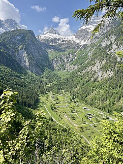 Am südwestlichen Ende hat das Tal eine Höhe von rund 750 m ü. A. Aufgrund des geringen Höhenanstiegs und einer mittleren Breite von 300 Metern ist es auch besiedelt.