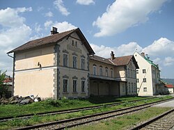 Ab 1. Mai 1933 wurde der Personen-, Gepäck- und Expressgutverkehr eingestellt.[5] Die Verstaatlichung, verbunden mit dem Erlöschen der Konzession am 31. Dezember 1934, erfolgte mit Kundmachung des Bundesministeriums für Handel und Verkehr vom 22. November 1934, wirksam mit 1. Jänner 1935.[7] Mit 15. Juli 1942 wurde die Strecke stillgelegt[Anm. 2] und noch im selben Jahr größtenteils abgetragen. Übrig blieb (bis in die 1970er-Jahre) ein 700 m langer Gleisabschnitt bei Willendorf (bis ehemaligem Streckenkilometer 0,851),[8] der zur Hinterstellung von Leerwagen für das Grünbacher Bergwerk genutzt wurde.
