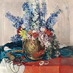 | Stillleben mit Blumen in Messingvase und Schmuckstücken title QS:P1476,de:"Stillleben mit Blumen in Messingvase und Schmuckstücken" label QS:Lde,"Stillleben mit Blumen in Messingvase und Schmuckstücken" | http://www.arcadja.com/auctions/de/hofbauer_louis/kunstler/13659/ | Louis Hofbauer (Austrian, 1889 – 1932). | Datei:Hofbauer louis.jpg |