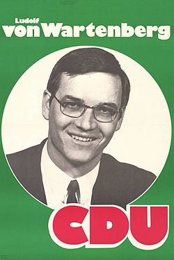 | Ludolf von Wartenberg CDU Abbildung : Porträtfoto Plakatart : Kandidaten-/Personenplakat mit Porträt Auftraggeber : CDU in Niedersachsen, Hannover Drucker_Druckart_Druckort : Gebrüder Jänecke, Hannover Objekt-Signatur : 10-008 : 305 Bestand : Landtagswahlplakate Niedersachsen (10-008) GliederungBestand10-18 : Landtagswahlplakate Niedersachsen (10-008) » CDU Lizenz : KAS/ACDP 10-008 : 305 CC-BY-SA 3.0 DE | Diese Datei wurde Wikimedia Commons freundlicherweise von der Konrad-Adenauer-Stiftung im Rahmen eines Kooperationsprojektes zur Verfügung gestellt. | CDU | Datei:KAS-Wartenberg, Ludolf von-Bild-5465-1.jpg | |