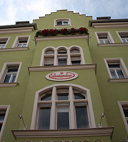 | Regensburg, Arnulfplatz. In diesem Haus lebte Ludwig Bemelmans als KInd | Selbst fotografiert | Amrei-Marie | Datei:Bemelmans-Wohnhaus in Regensburg.JPG | |
