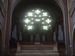 II/P | 13 | Das Orgelgehäuse wurde von Miklós Ybl entworfen (in Ungarn der erste Gehäuseentwurf, der von einem Architekten stammt).[20] Die Orgel, die per Schiff aus Salzburg ankam, erklang erstmals am 17. Dezember 1854. Zwei Jahre später spielte Franz Liszt an ihr.[21] Die Orgel wurde 1973 von der Firma FHVO (Orgelfabrik der Budapester Musikinstrumentenfirma) renoviert und erweitert. |
