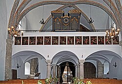 I/P | 8 | Das 1916 veränderte Instrument wurde 1994/1995 von Fritz Mertel auf den Zustand der Erbauung gebracht.[24] → Artikel: Orgel, →Orgelindex |