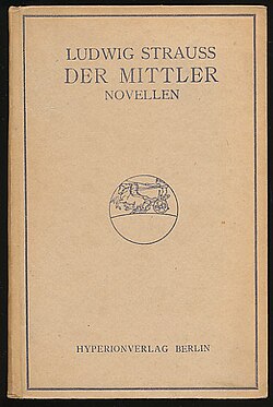 | Buchumschlag: Ludwig Strauss: Der Mittler (Novellen). Berlin 1916 | Search in ZVAB | Autor/-in unbekannt Unknown author | Datei:Ludwig Strauss Der Mittler.jpg | |