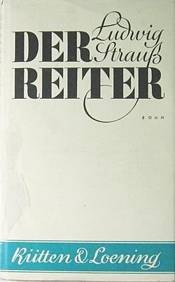| Buchumschlag: Ludwig Strauss: Der Reiter (Novelle) Frankfurt am Main, 1929. | Search in ZVAB | Autor/-in unbekannt Unknown author | Datei:Ludwig Strauss Der Reiter.jpg | |