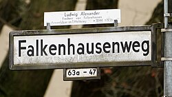 - ↑ Falkenhausenweg. In: Straßennamenlexikon des Luisenstädtischen Bildungsvereins (beim Kaupert)
