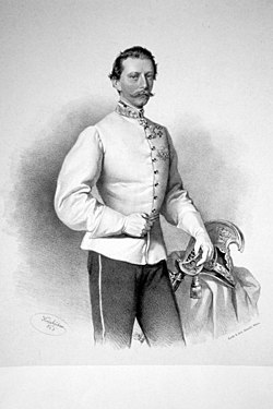 | Ludwig Prinz von Hohenlohe-Langenburg (1823-1866), k. k. OberstLithographie von Josef Kriehuber, 1863 | Eigenes Foto einer Originallithographie der Albertina (Wien) | Josef Kriehuber (1800 -1876) | Datei:Ludwig von Hohenlohe-Langenburg Litho.jpg |
