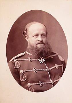 | Portraitaufnahme des Fürsten Ludwig zu Sayn-Wittgenstein-Hohenstein, ca. 1880. Eigene Aufnahme in der Rentkammer Wittgenstein am 10. April 2018 | Eigenes Foto vom 10. April 2018 einer Portraitaufnahme von ca. 1880, Fotograf unbekannt. | Unbekannter Fotograf | Datei:Ludwig zu Sayn-Wittgenstein-Hohenstein.jpg |